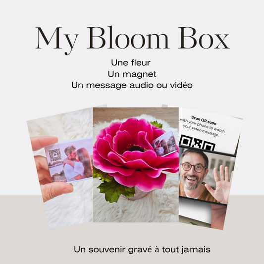 Ouvre la boîte → la fleur surgit → la carte apparaît → le QR code lance ta vidéo ou ton audio.